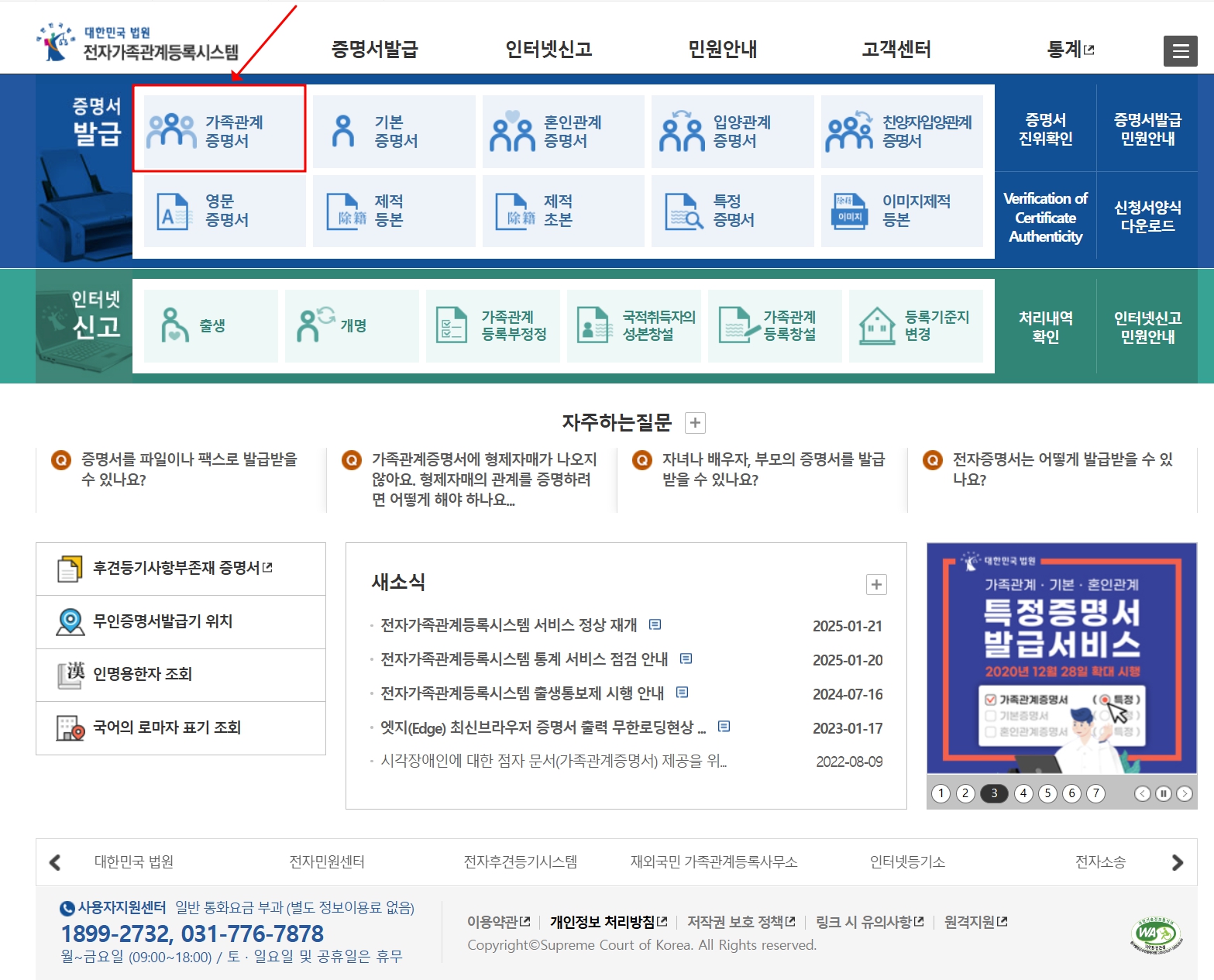 인터넷을 통한 가족관계증명서 무료 발급