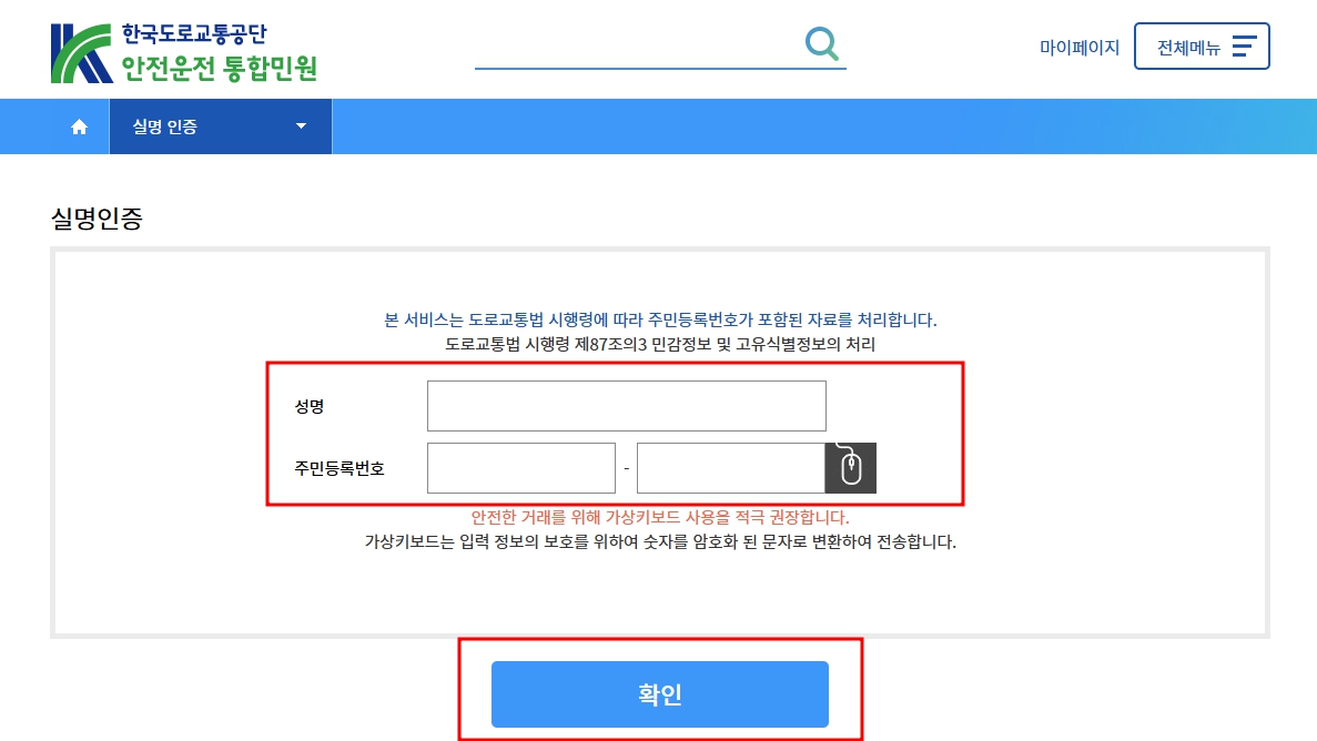 - 안전운전 통합민원 홈페이지 접속: 도로교통공단의 안전운전