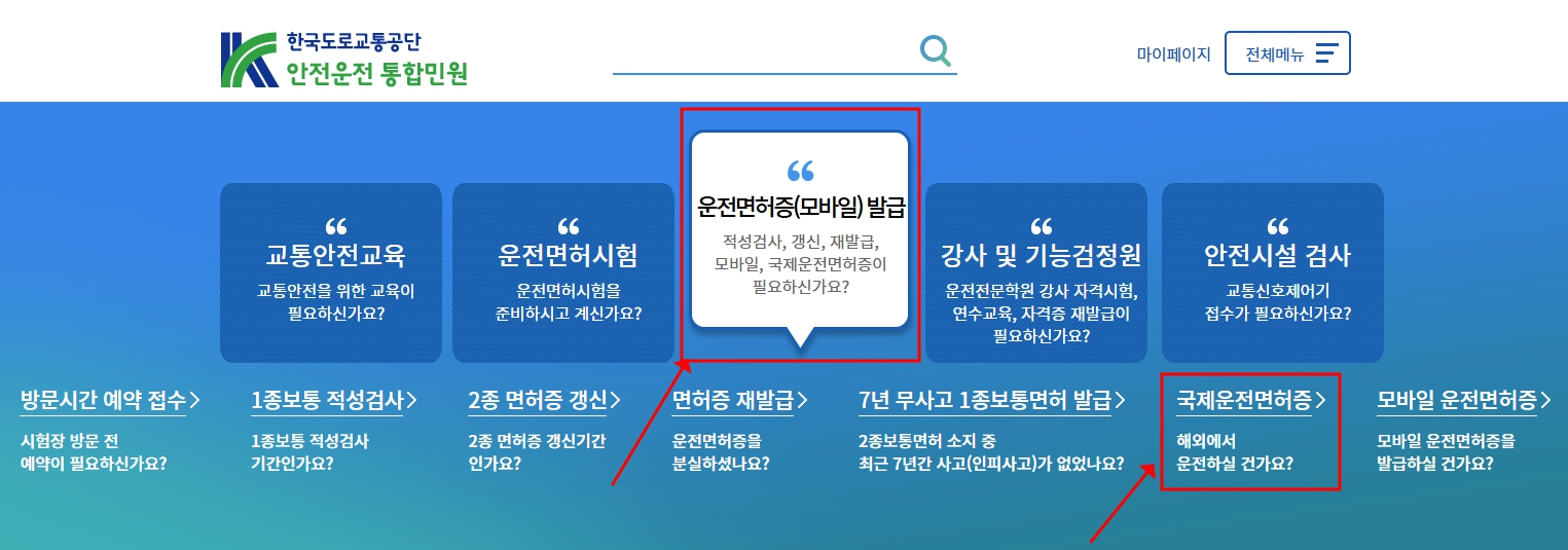 - 국제운전면허증 발급 신청 선택: 메인 화면에서 '국제운전면허증 발급 신청' 메뉴를 클릭합니다.