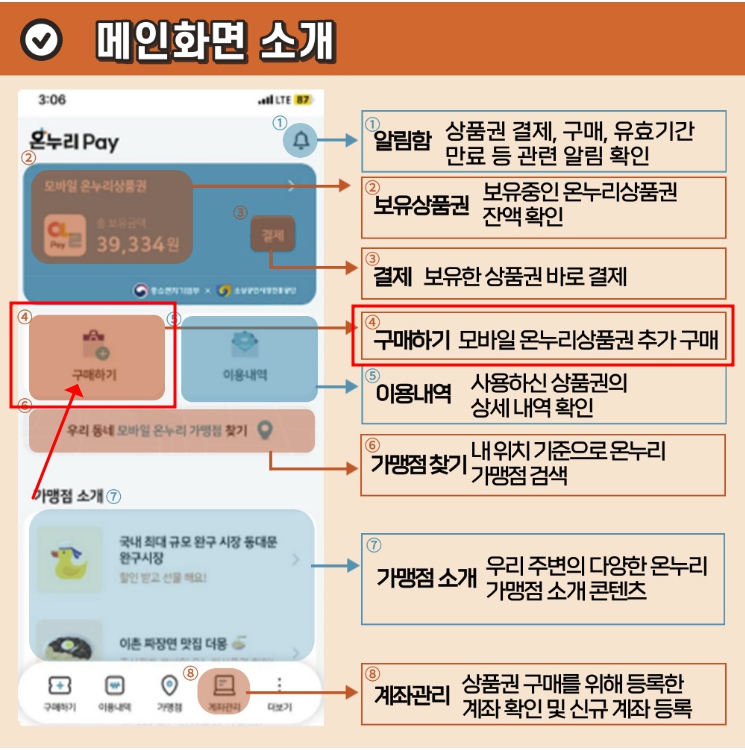 - 모바일 상품권은 '온누리페이' 앱을 통해 구입할 수 있습니다.